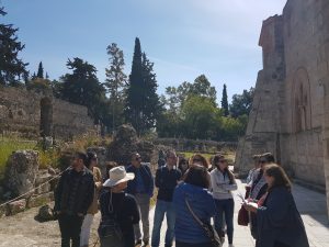 Visiting the Moni Dafniou for the implementation of the lesson plan with the interdisciplinary approach as a sample and mosaic workshop at 3rd Gymnasio Nikaias by the principal and Visual Arts Teacher Kalli PAPATHEODOROU